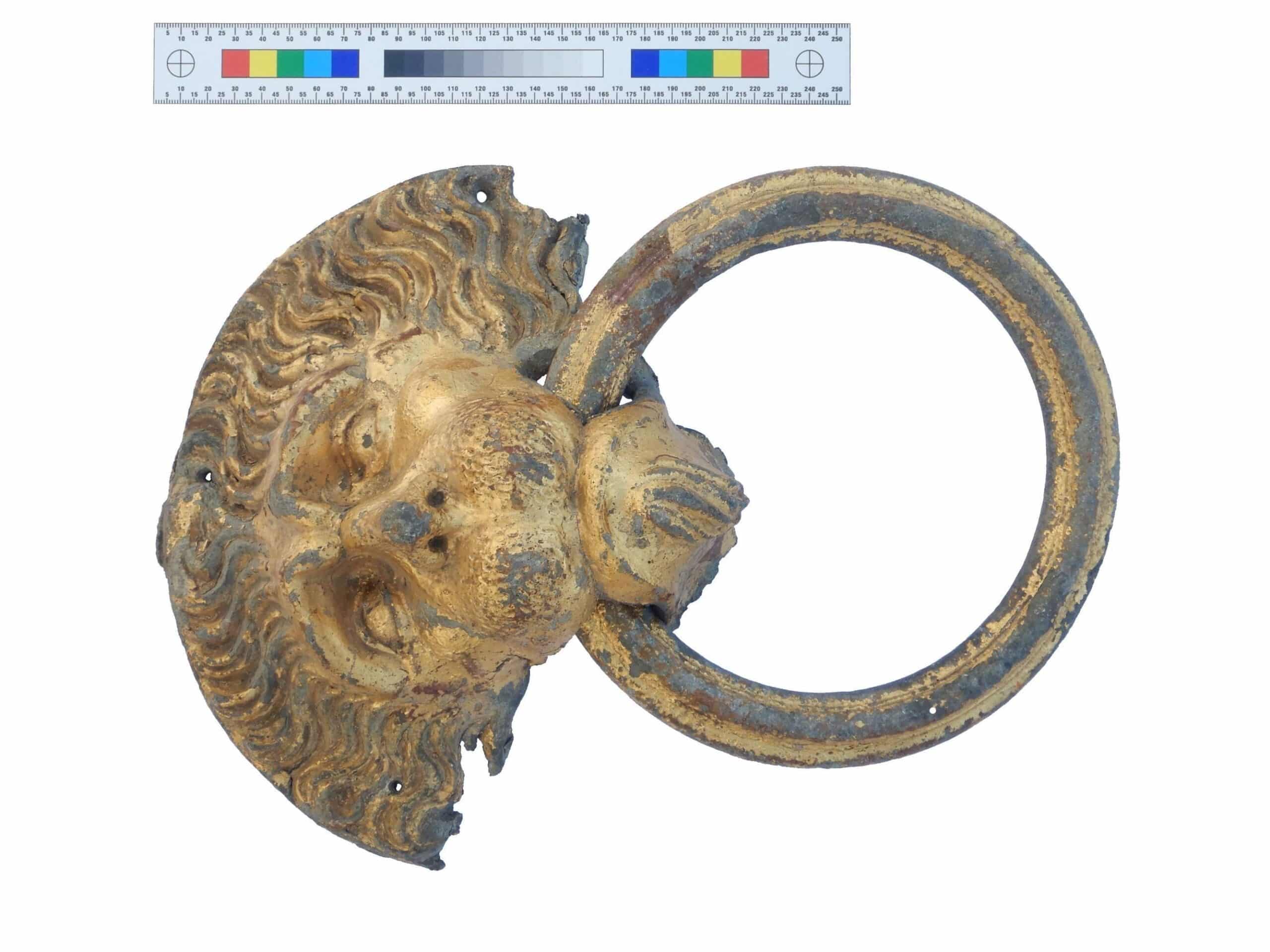 Toto rozmerné, ťažké kovanie má dĺžku približne 23 cm, šírku 23 cm a priemer obruče asi 20 cm. „Podľa analýzy vyhotovenej odborom konzervačnej vedy Pamiatkového úradu Slovenskej republiky je zhotovené z cínovo-olovenej zliatiny s prevažným zastúpením cínu a s menším podielom olova. Povrchovú úpravu tvorí celoplošné, v súčasnosti značne ošúchané zlátenie, najcelistvejšie zachované v centrálnej časti plastiky, v oblasti očí, líc a brady,“ priblížil Matúš Sládok z Krajského pamiatkového úradu Trnava.